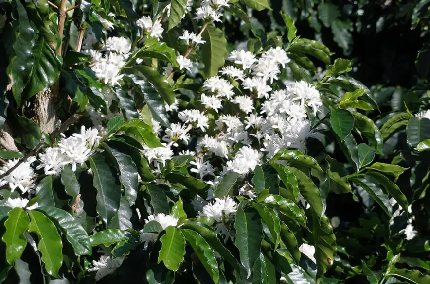 It is in the middle of October, at the beginning of the rains, that the coffee plant eakes up from its winter hibernation period and blooms. On the farm, people say that a blooming coffee plantation looks like a bridal veil. It’s beautiful!